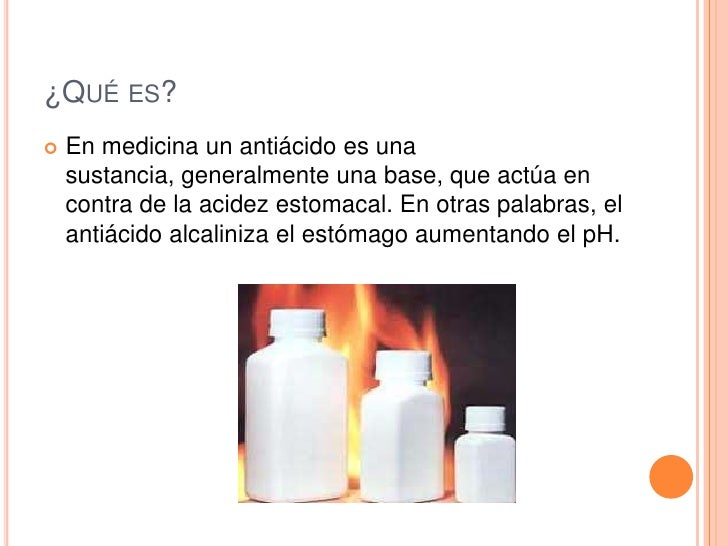 Enlaces patrocinados: Un antiácido es un medicamento que actúa contra de la acidez estomacal. ¿Qué son los antiácidos? • Los antiácidos son fármacos que neutraliza.